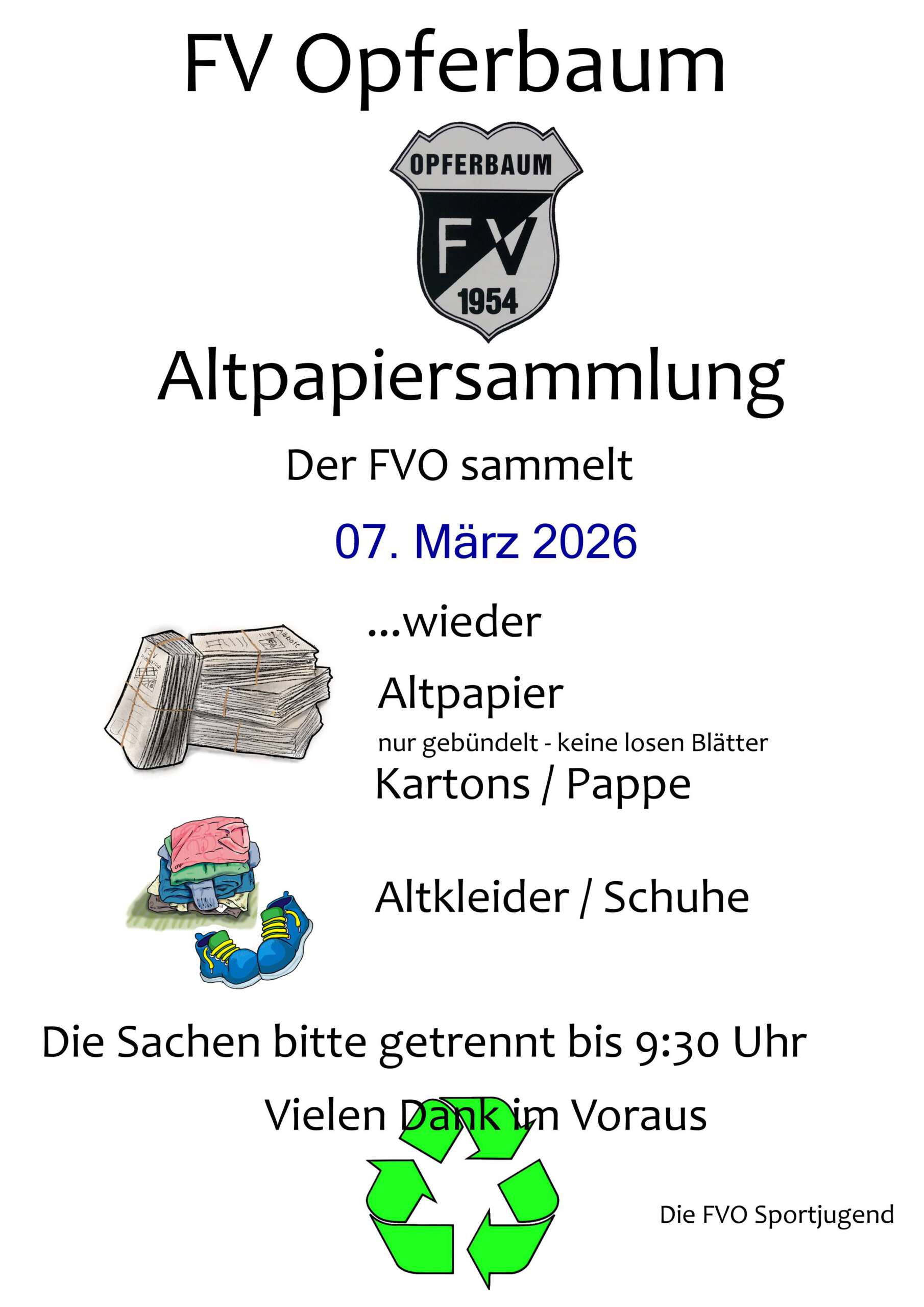 Der FVO sammelt am Samstag, den 07. März 2026 wieder: