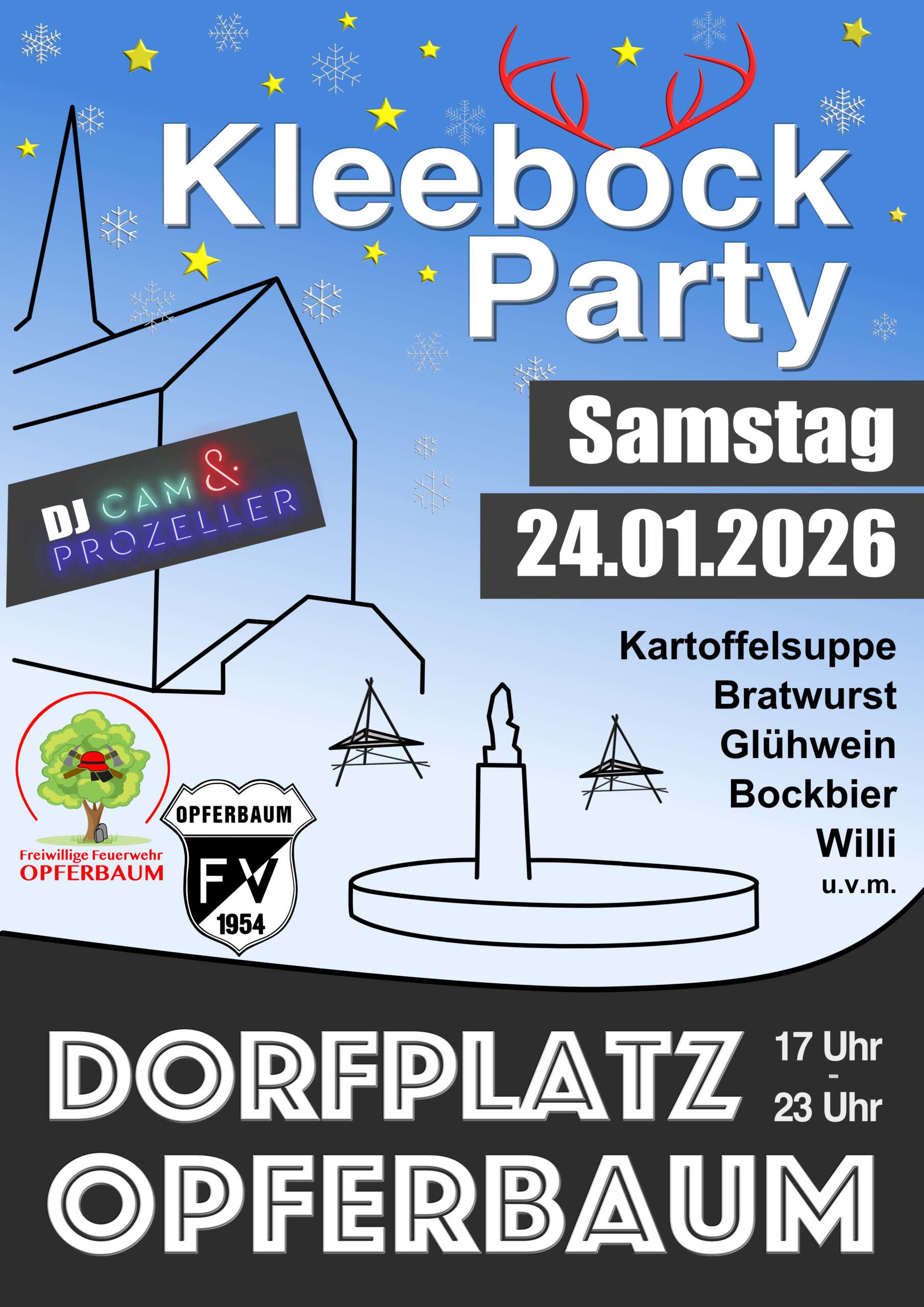 - Kleebockparty 2026 am Marienplatz in Opferbaum am Samstag, 24.01.2016 ab 17:00 Uhr.