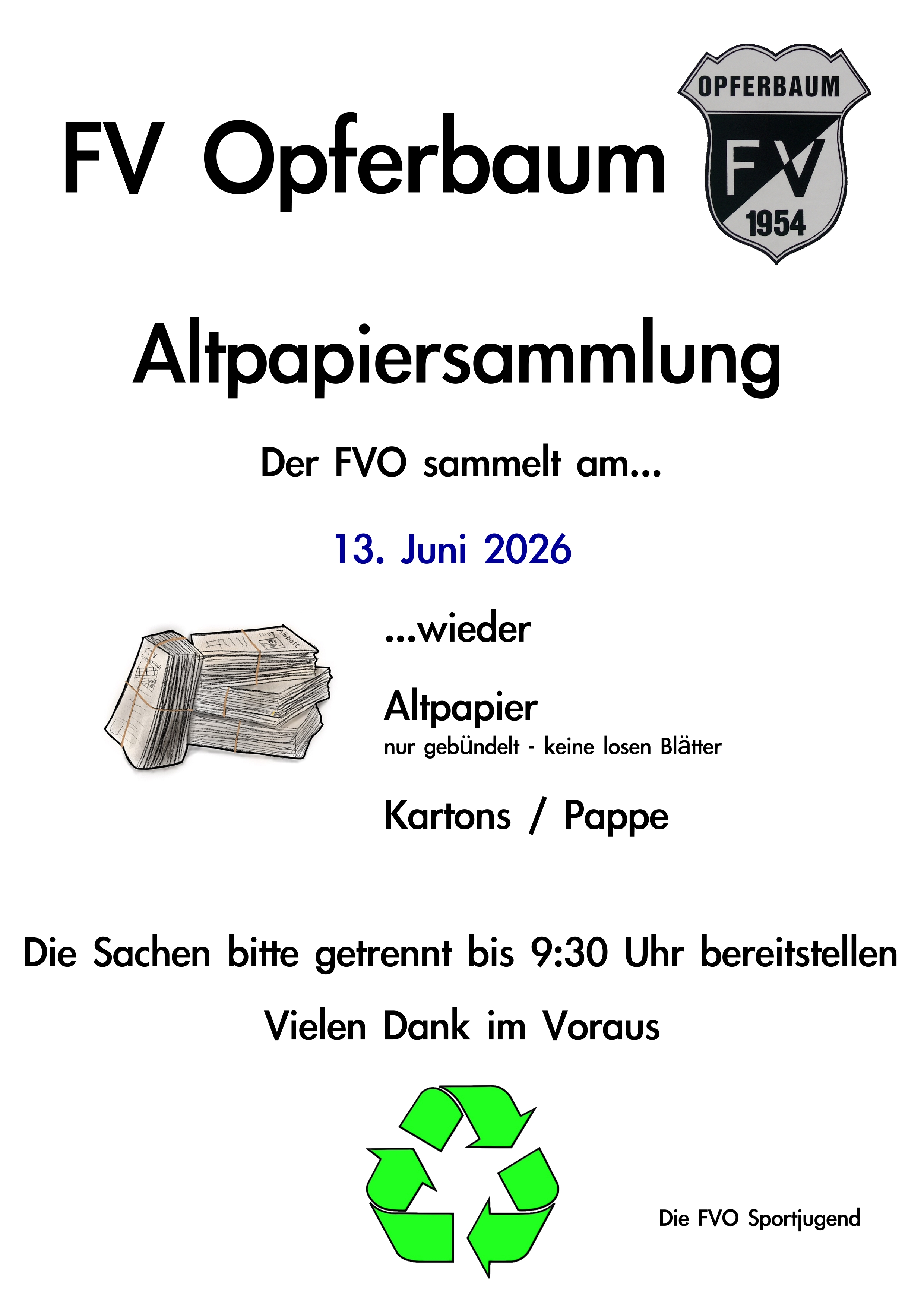FVO Altpapiersammlung am 13. Juni 2026