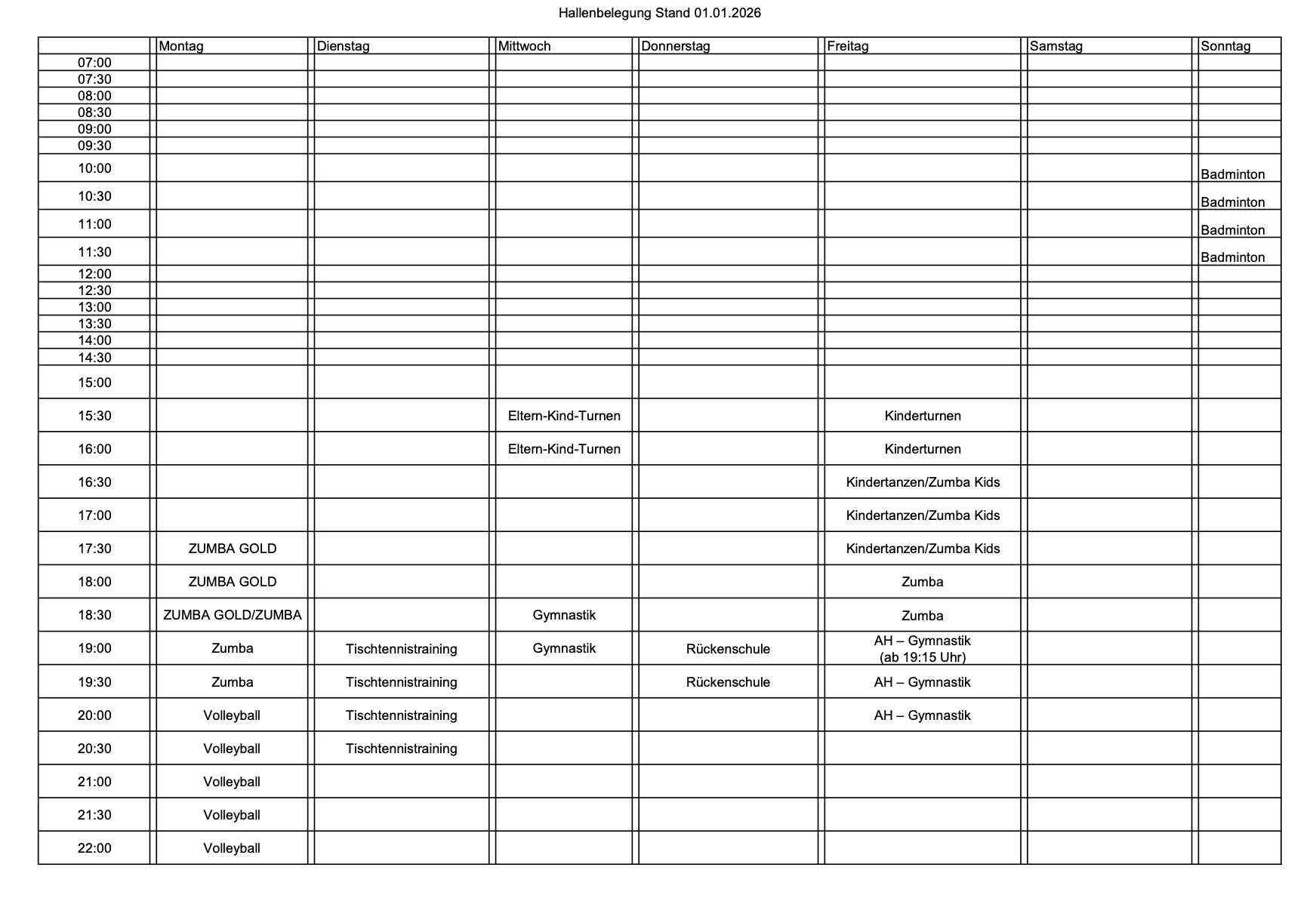 Hallenbelegungsplan 2025/2026