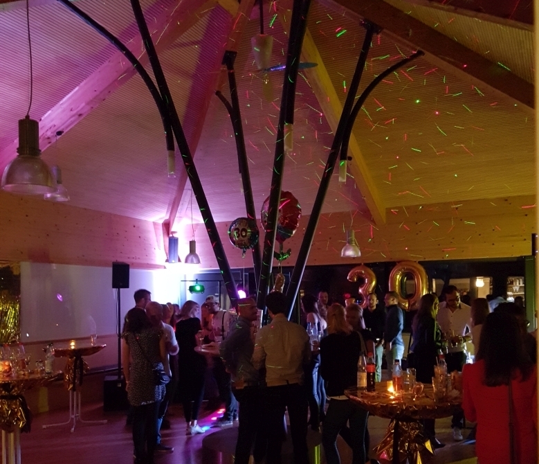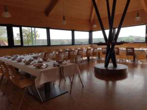In dem hellen und freundlichen Raum mit der einzigartigen Theke hält man sich gerne auf und es lässt sich prima Feiern und Diskutieren.